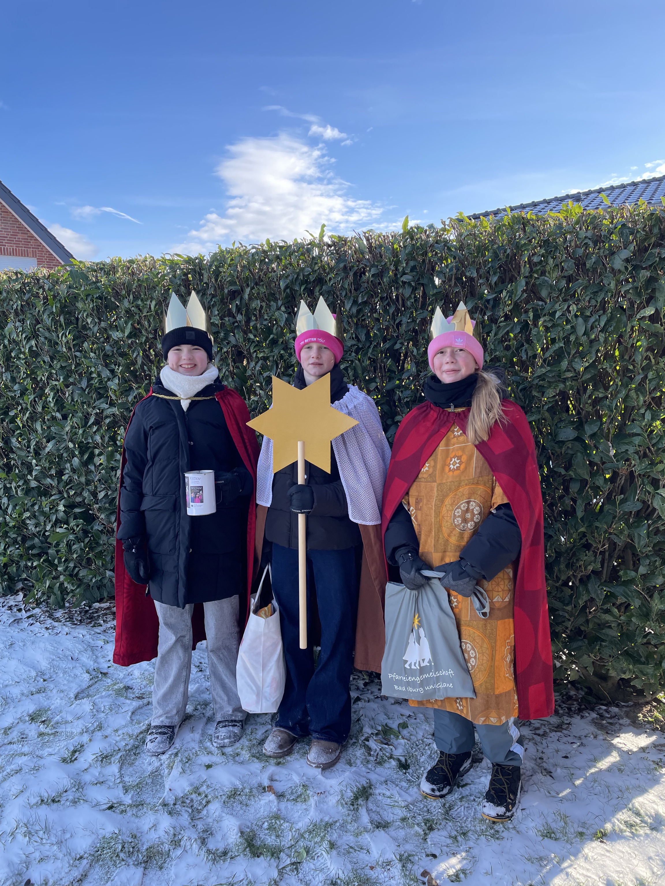 Wir möchten uns auch bei den Sternsinger-Teams aus St. Clemens und St. Jakobus bedanken! Durch eure Unterstützung war es in diesem Jahr wieder möglich, dass so viele Sternsinger*innen verkleidet bei uns unterwegs sein konnten.